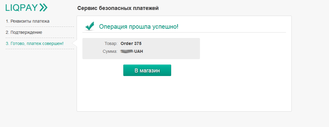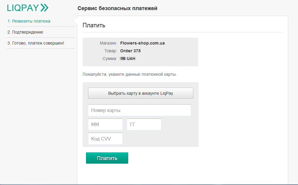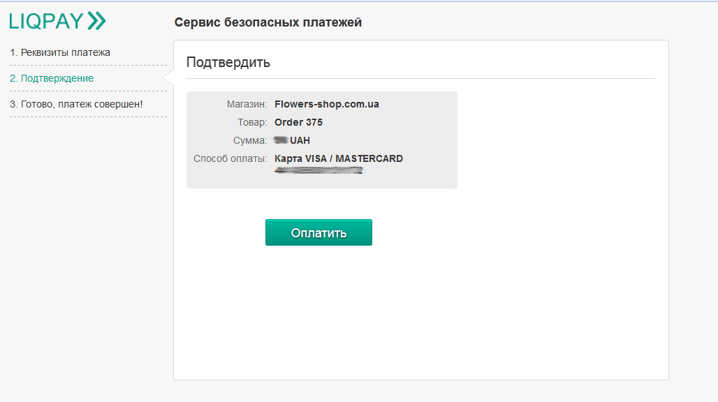 Our on-line store works into Visa and Mastercard payment system. The safety of LiqPay